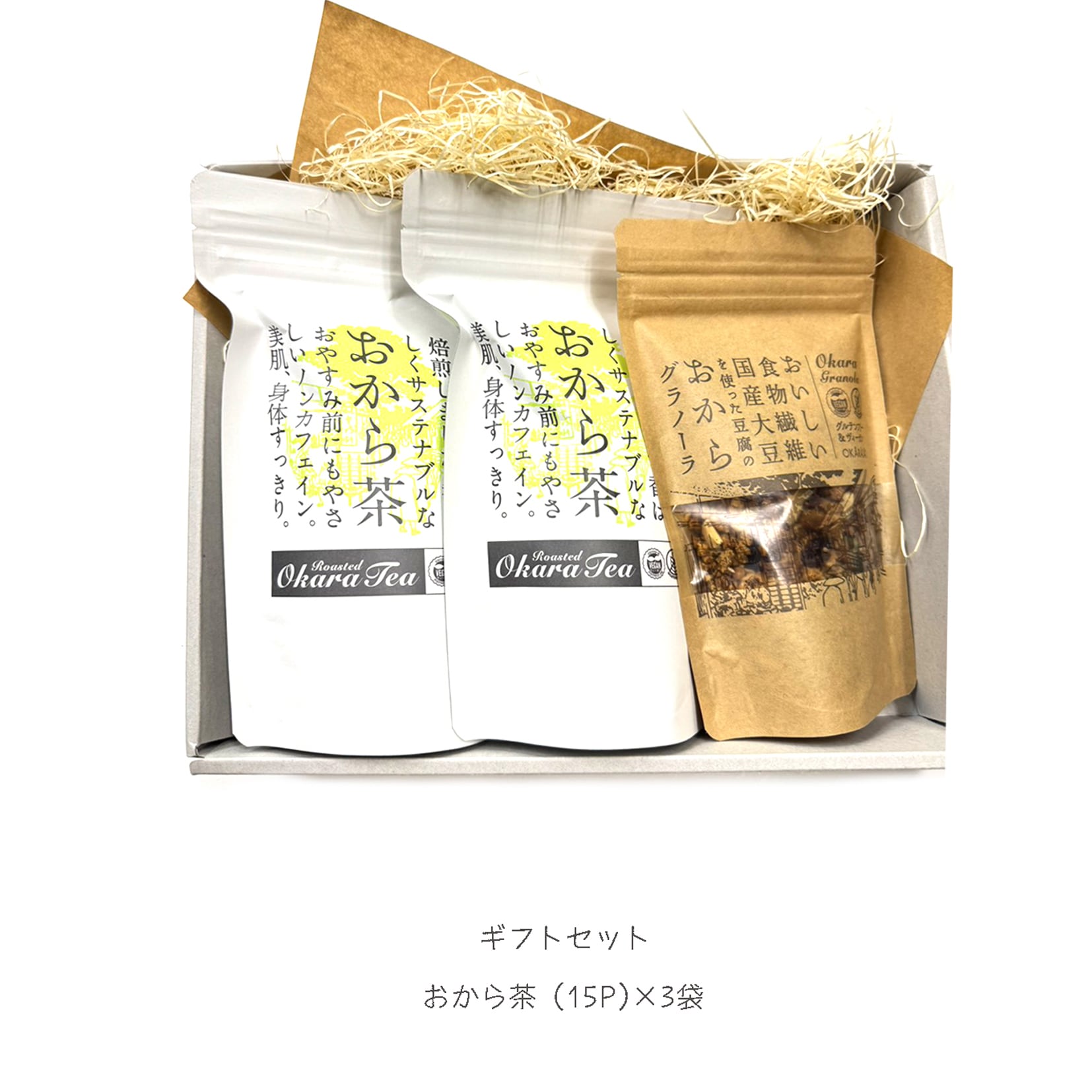 おから茶 (15P入 x2袋) ・ おからのグラノーラ (100g x1袋) ギフトBOX