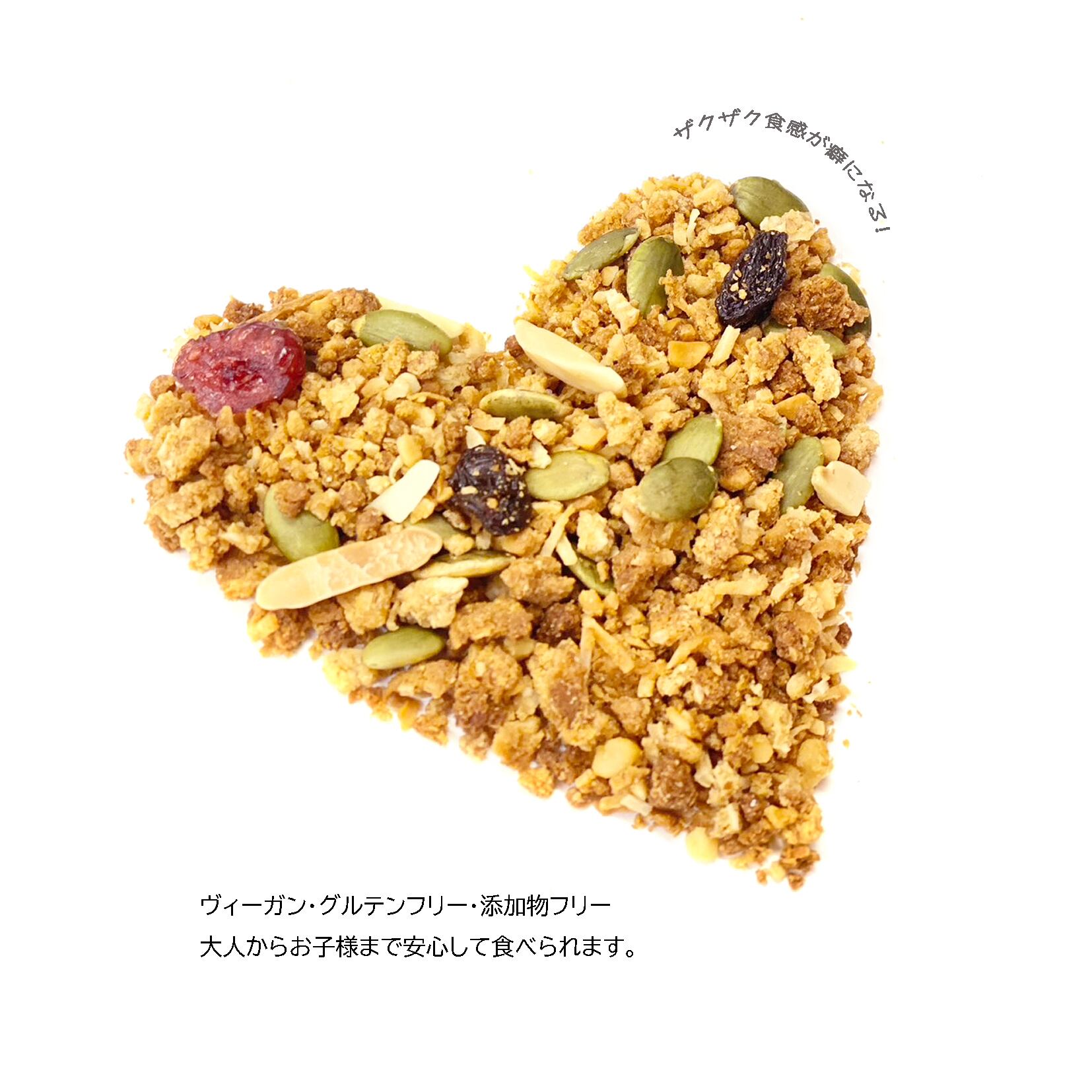 、キャノーラ油、大豆パフ、レーズン、くるみ、クランベリー、パンプキンシード、