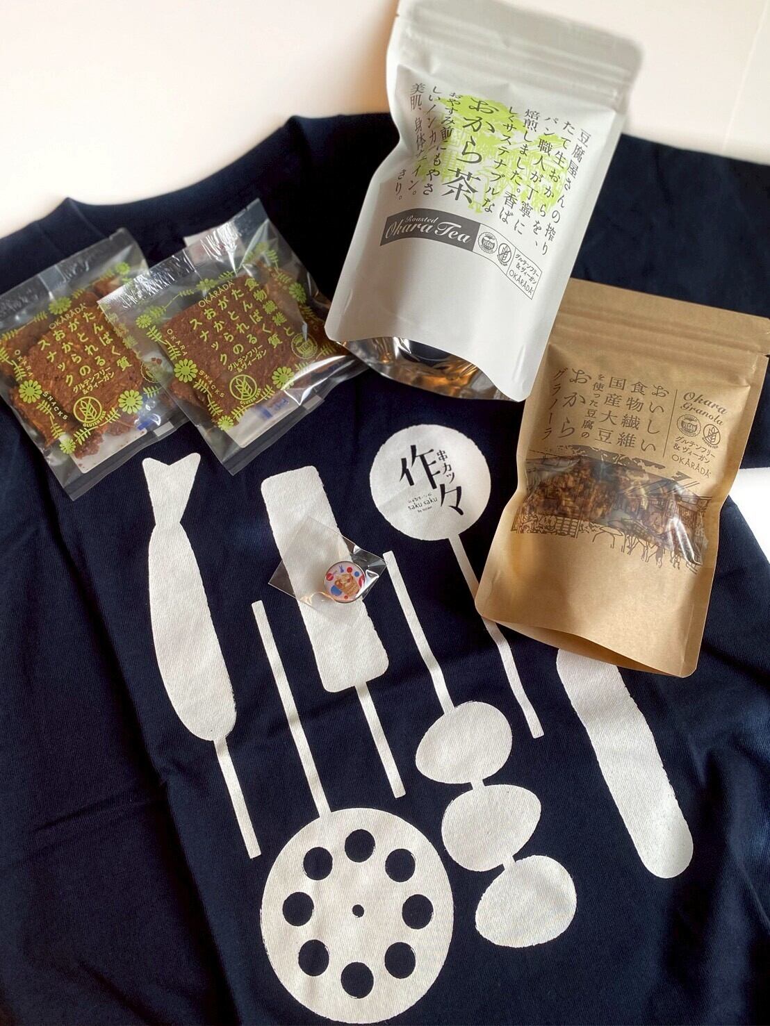 内容:Tシャツ1・スナック2・ピンバッチ1・グラノーラ1・お茶1・ソープ1